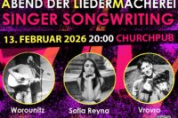 FEBRUAR 2026DRAW & PAINT: Kreativ-Session @ Amerlinghaus, open for all!Di, 10.2.26 19:00-21:30ALM: GOLDENER ABEND DER LIEDERMACHEREI @ Churchpub, 1030 WienFr,… Read more Shows & Kurse Februar 2026